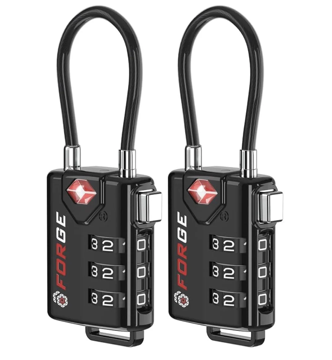 Simple but essential. These TSA-approved locks keep luggage secure without risking damage during inspections. The flexible cable design works on different zipper types and bag styles, and the resettable combination means no keys to lose.