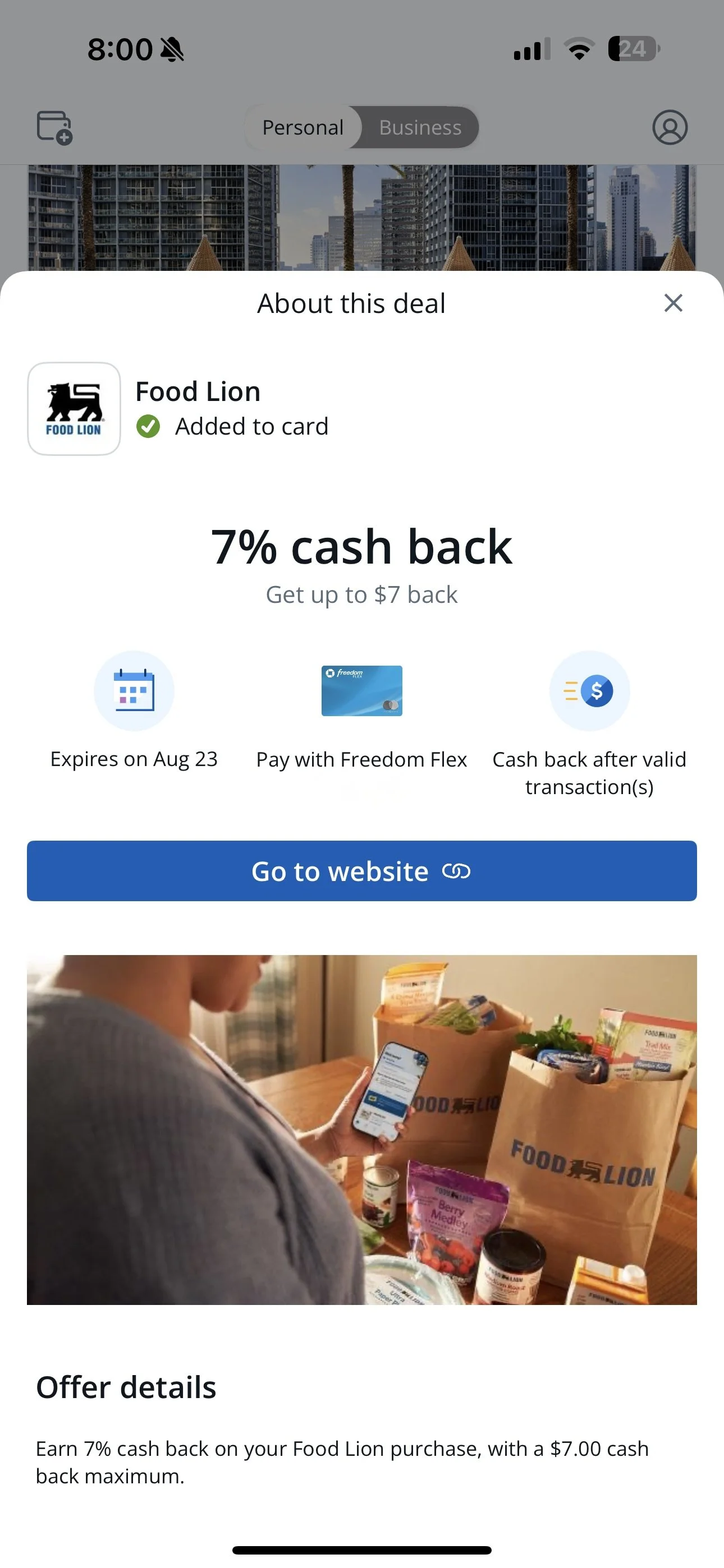 Earn 7% cash back on your Food Lion purchase (up to $7 back).