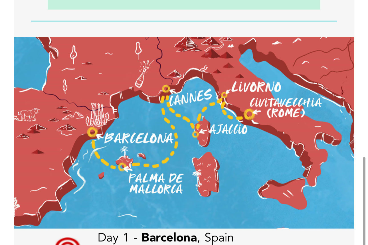 It was an ocean-view cabin, and the experience was incredible. It was a Mediterranean cruise that was round-trip from Marseille, France. My son was the youngest passenger on the ship, and the staff treated him like royalty. They remembered his name, fussed over him constantly, and just made the whole experience feel really special for our family.