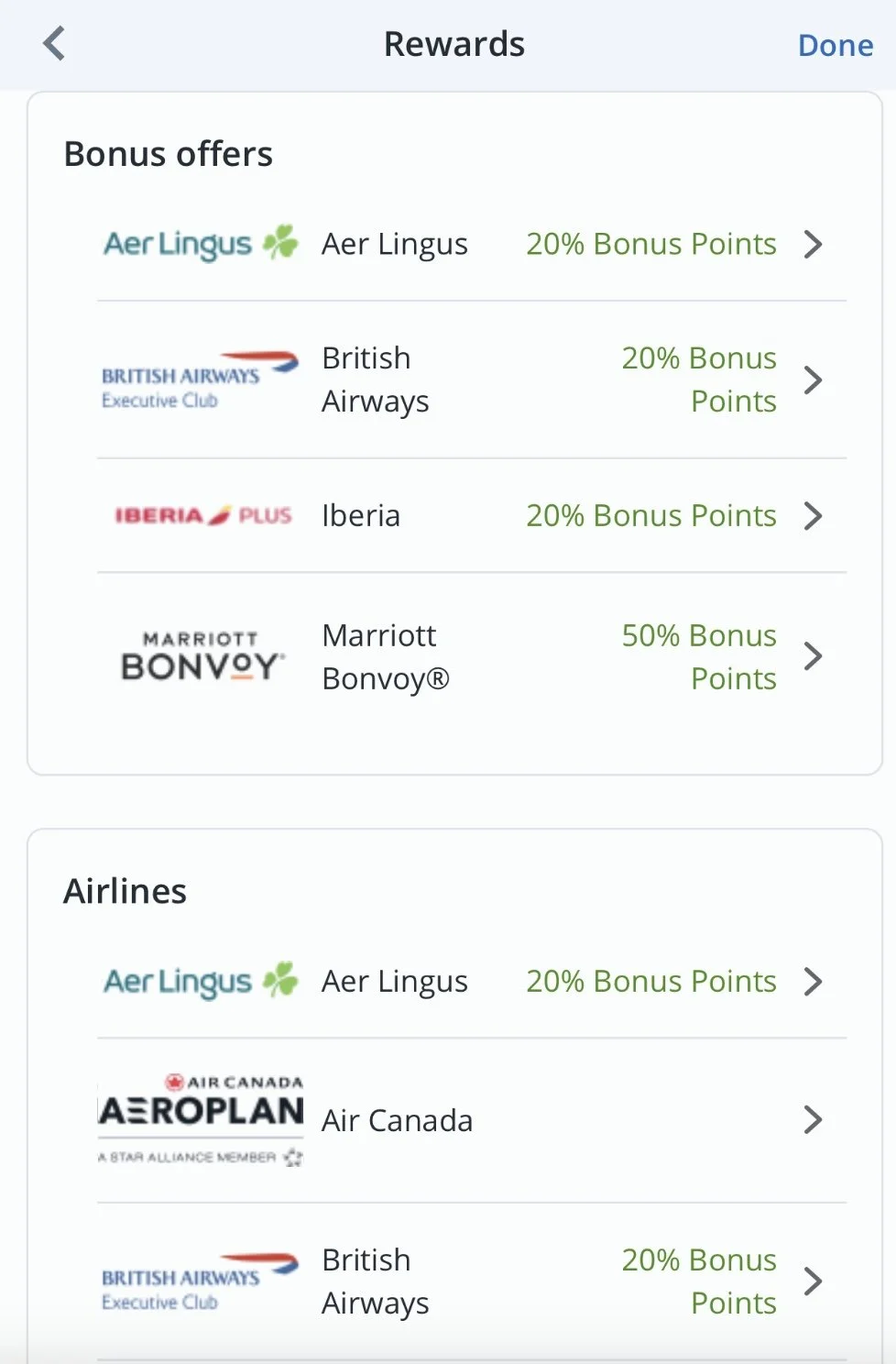 • Air Canada Aeroplan
