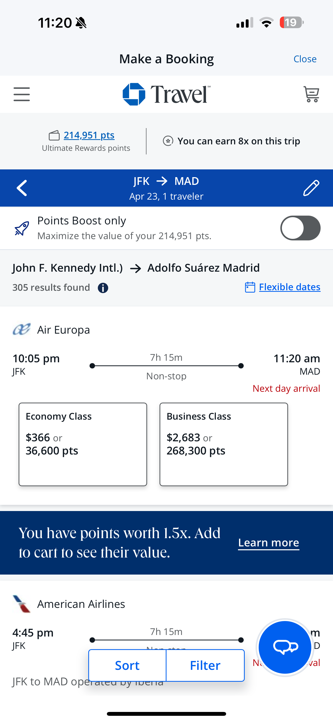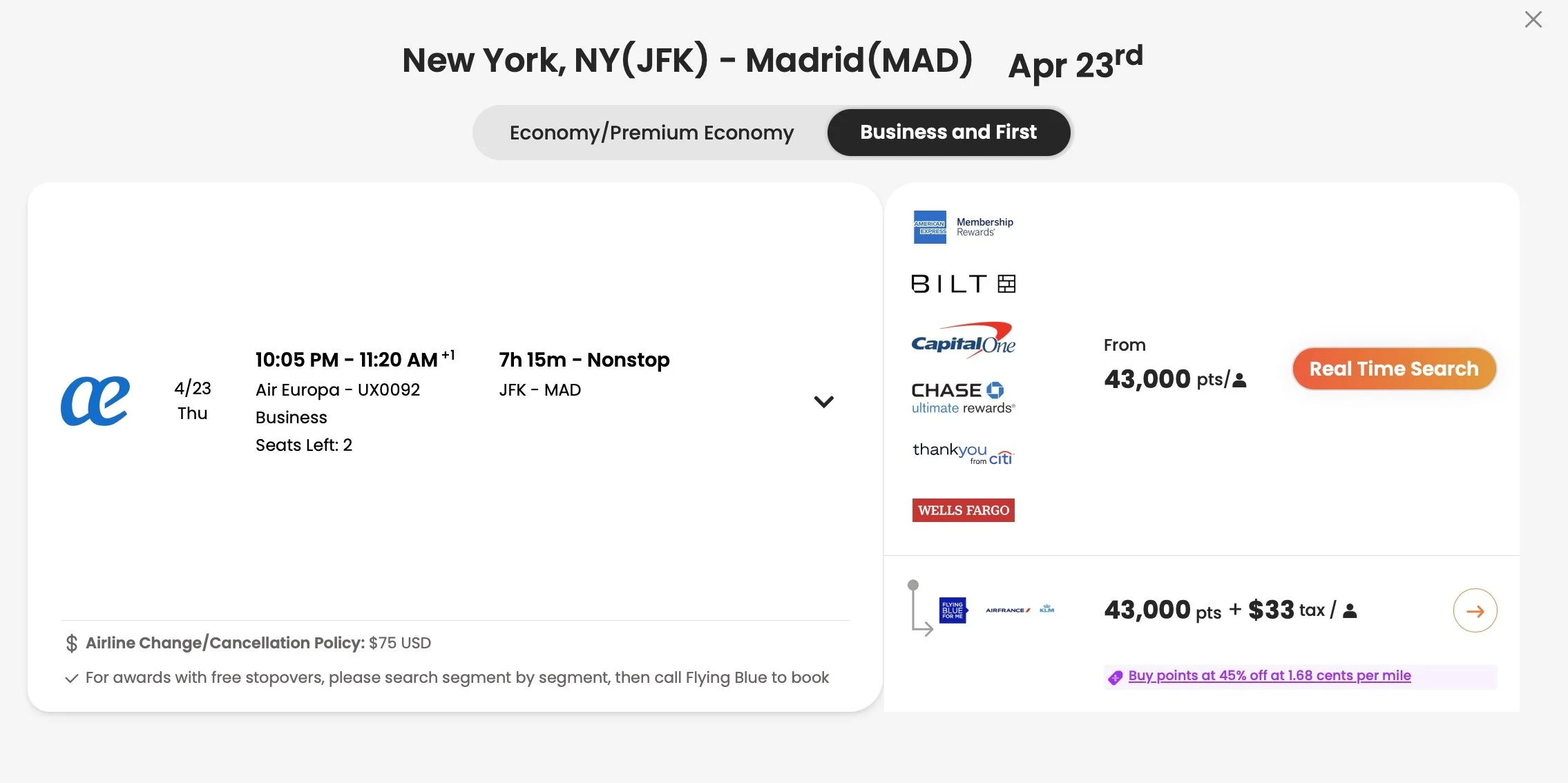 • Transfer to Air France Flying Blue: ~43,000 points