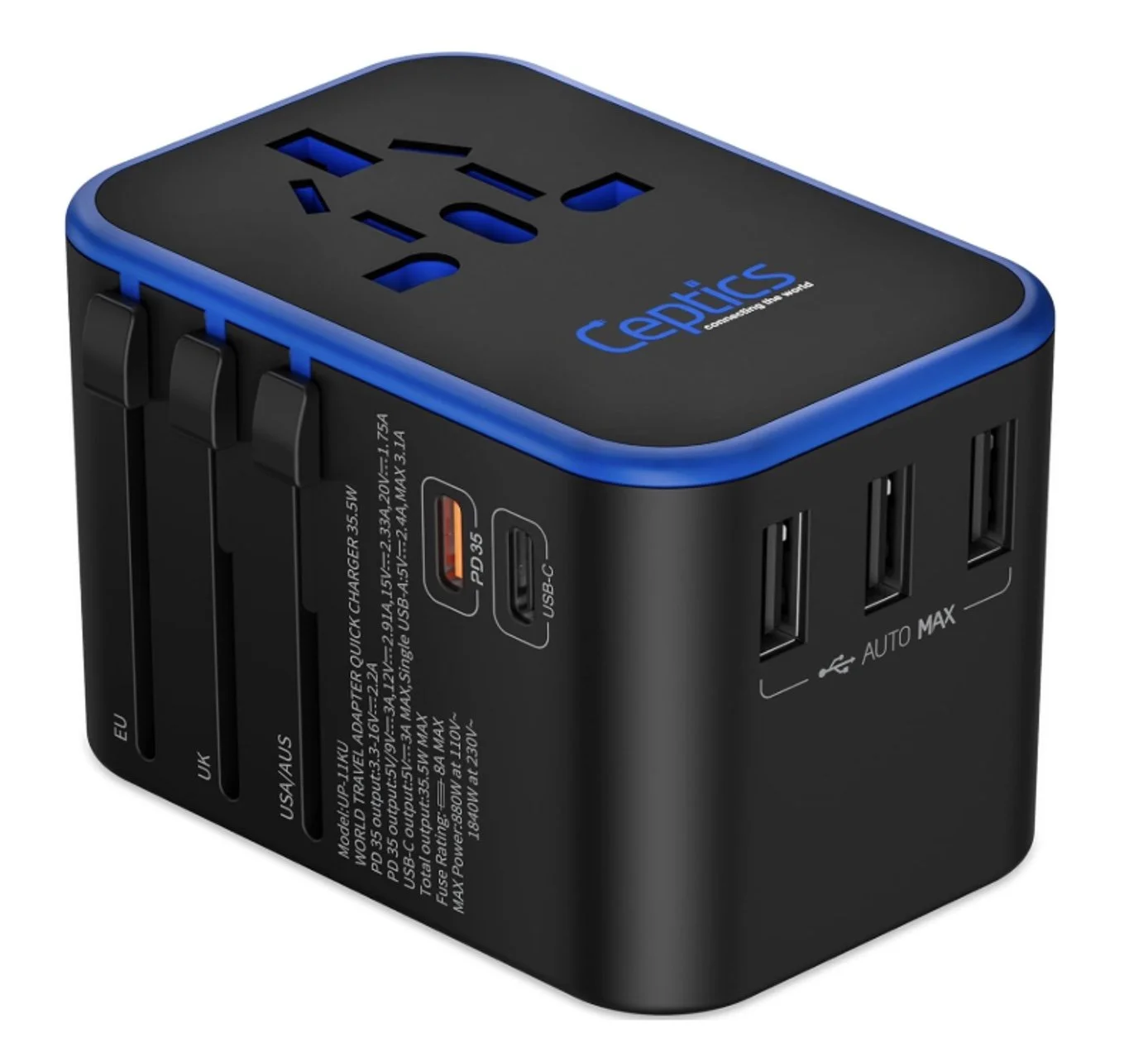 5. Ceptics Universal Travel Adapter (35W, Dual USB-C)