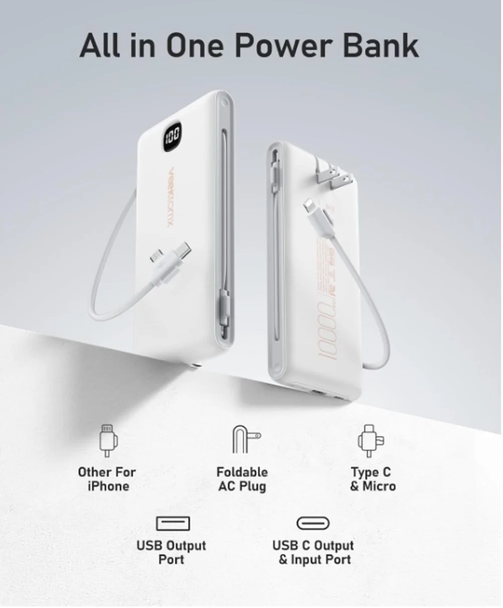 1. VEEKTOMX Portable Charger with Built-in Cables (10000mAh)
